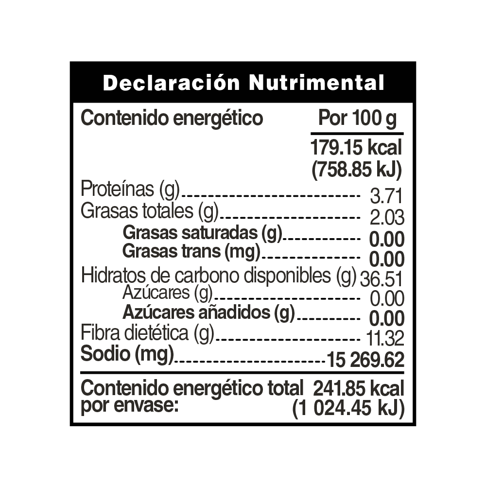 *La tabla nutrimental corresponde a la presentación seleccionada.
