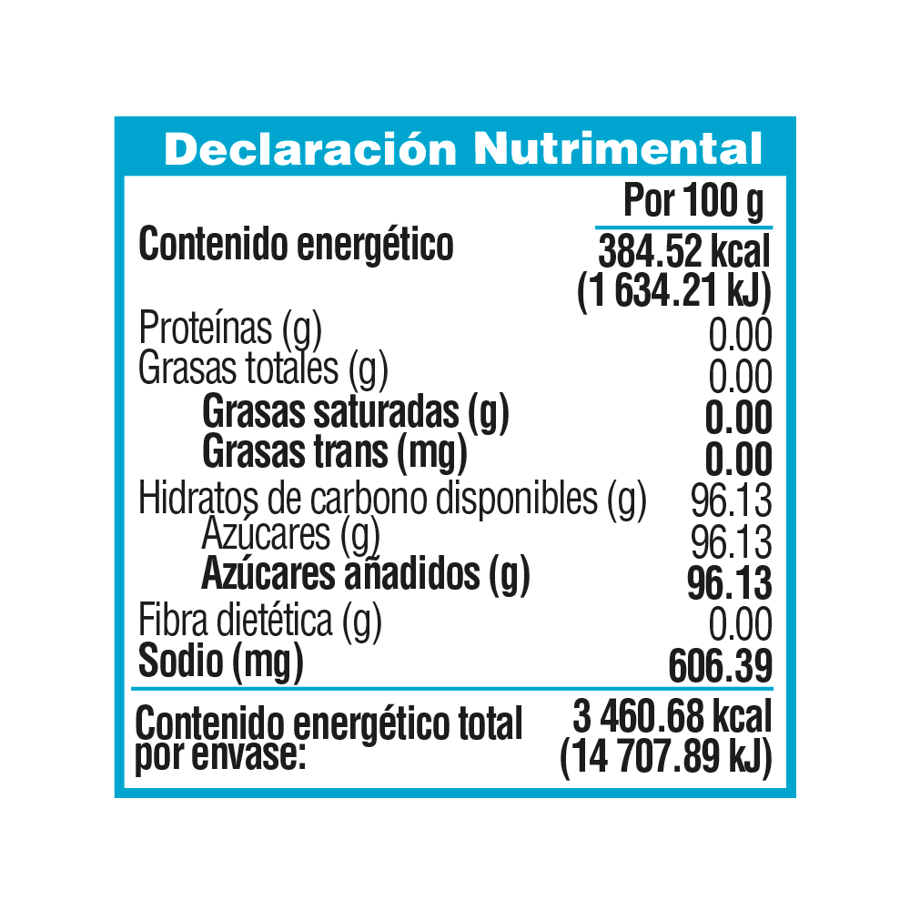 *La tabla nutrimental corresponde a la presentación seleccionada.