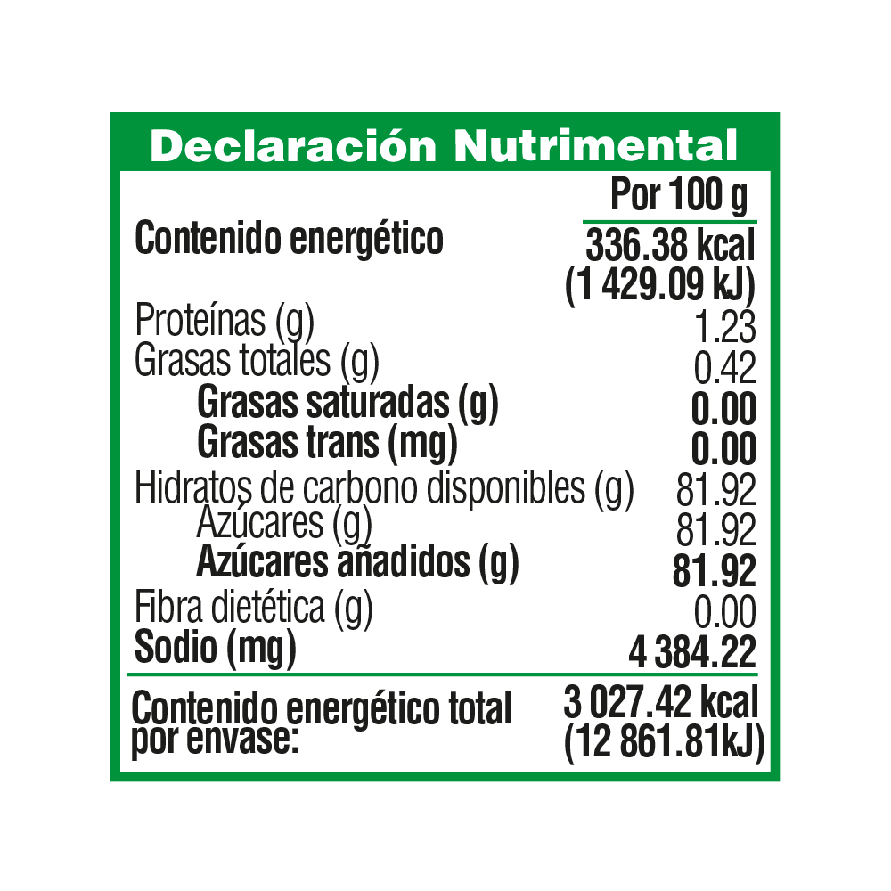 *La tabla nutrimental corresponde a la presentación seleccionada.